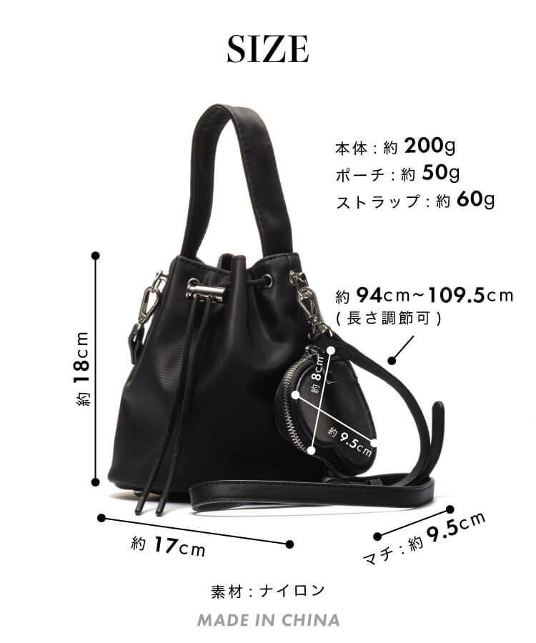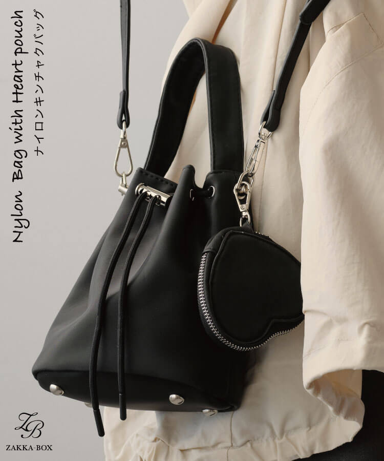 ナイロンキンチャクバッグ(ハートポーチ付き)