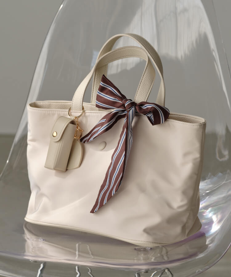 バッグ、首元や手首、ヘアアレンジ、さりげなく巻いて上品なアクセントに。