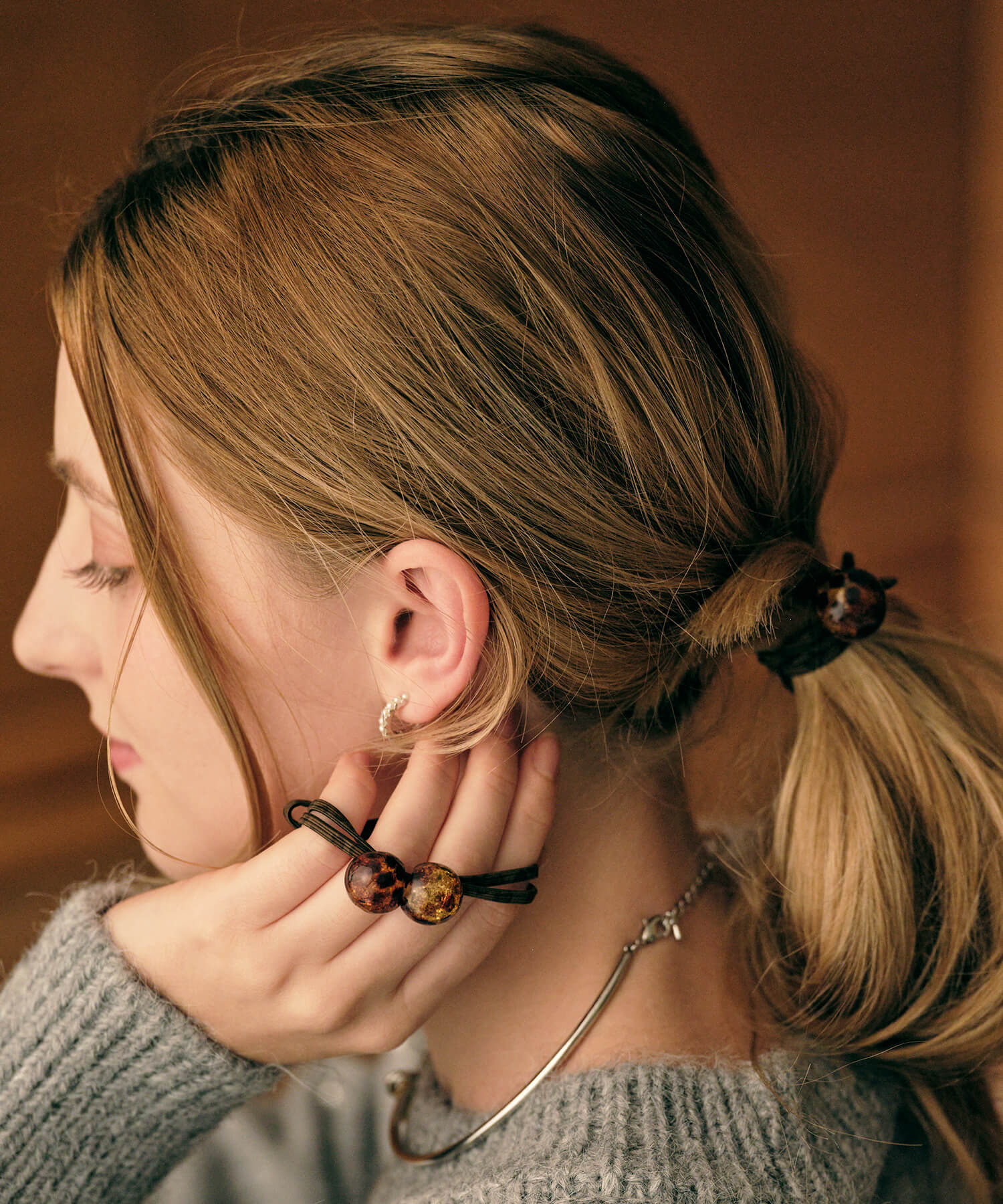 【ANOH】 レオパードボールヘアゴム